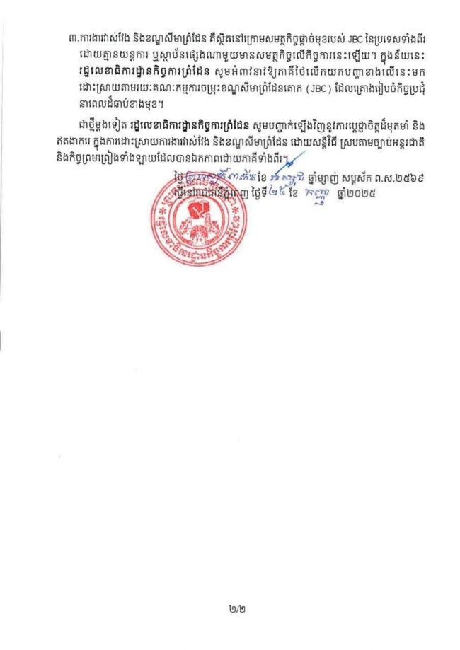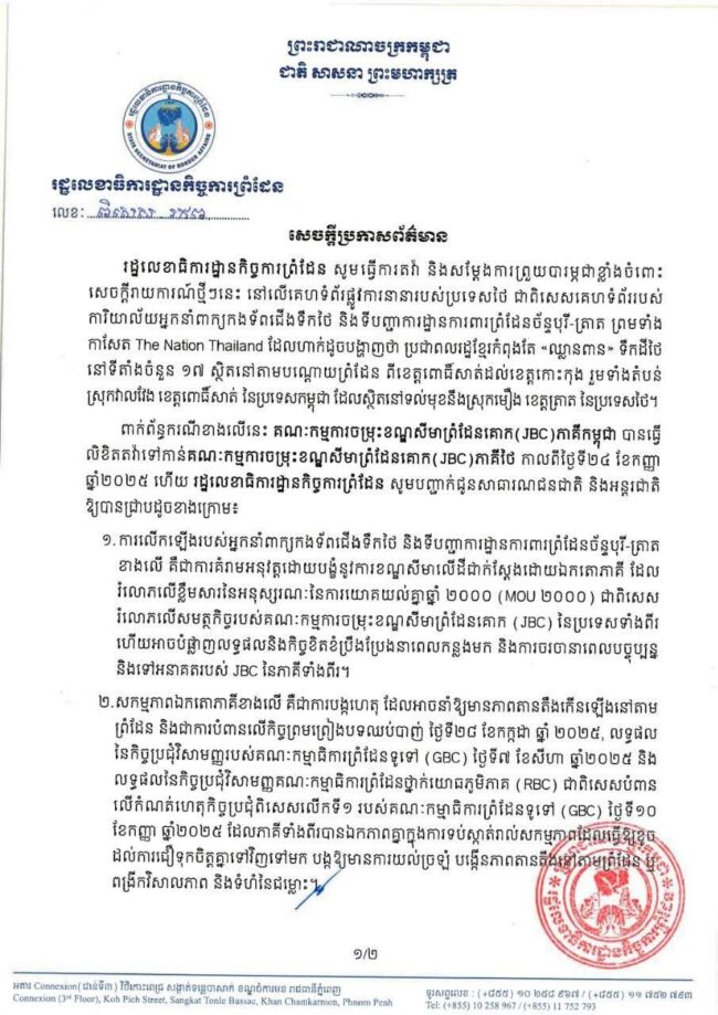 Homeព័ត៌មានជាតិសេចក្តីប្រកាសព័ត៌មានរបស់រដ្ឋលេខាធិការដ្ឋានកិច្ចការព្រំដែន user khmerpitSeptember 26, 2025 1:35 am CATEGORIES ព័ត៌មានជាតិសន្តិសុខ និង សង្គម Share This