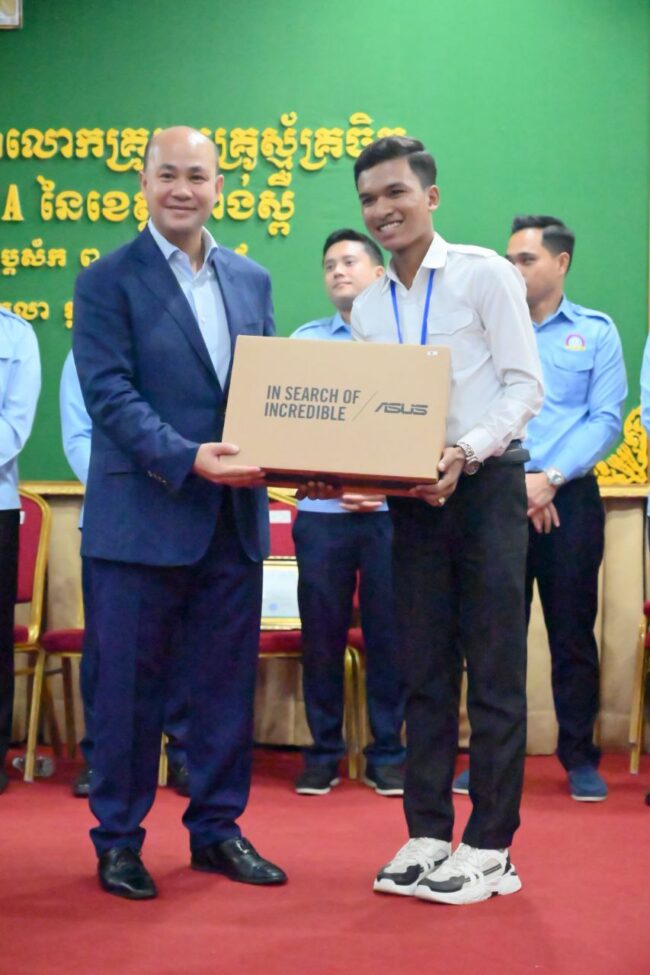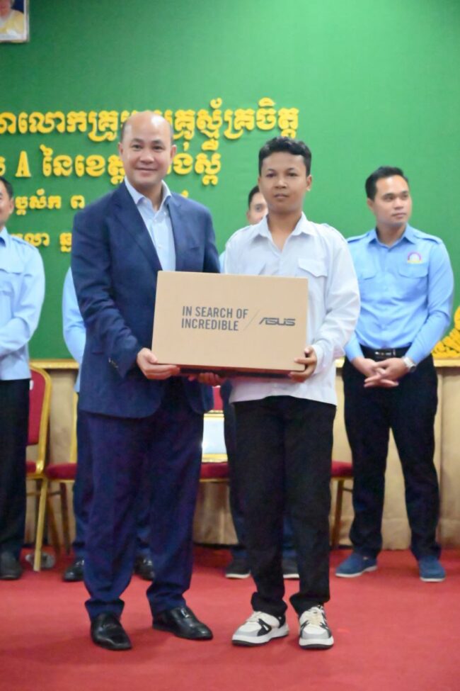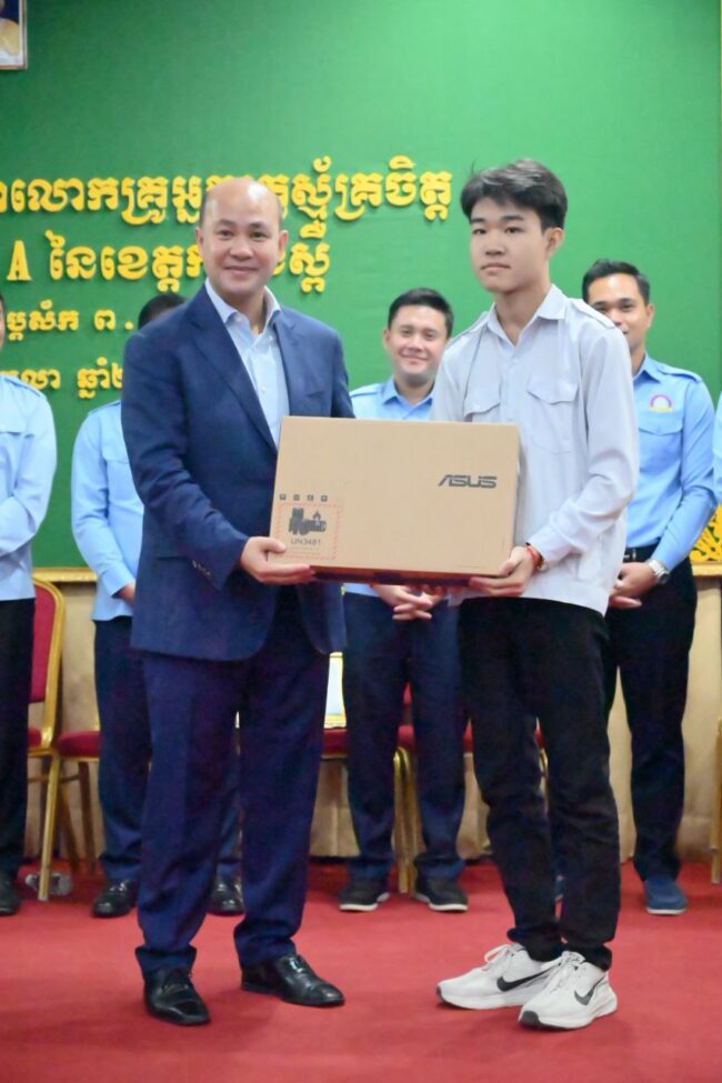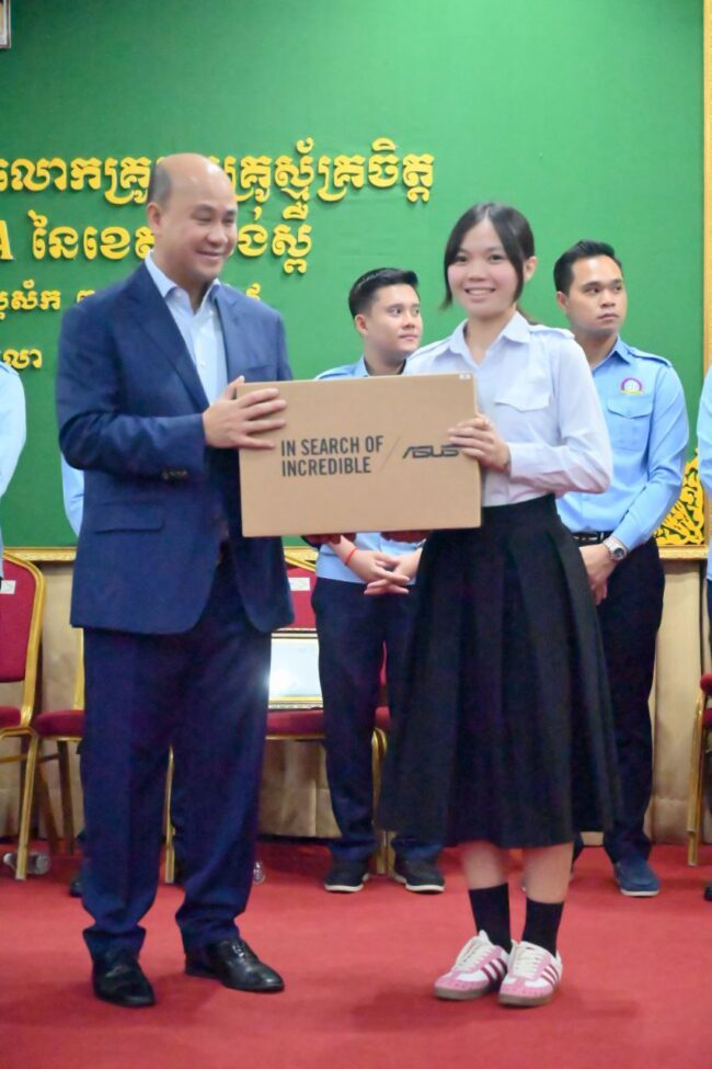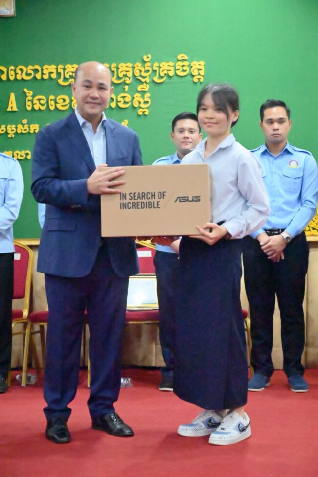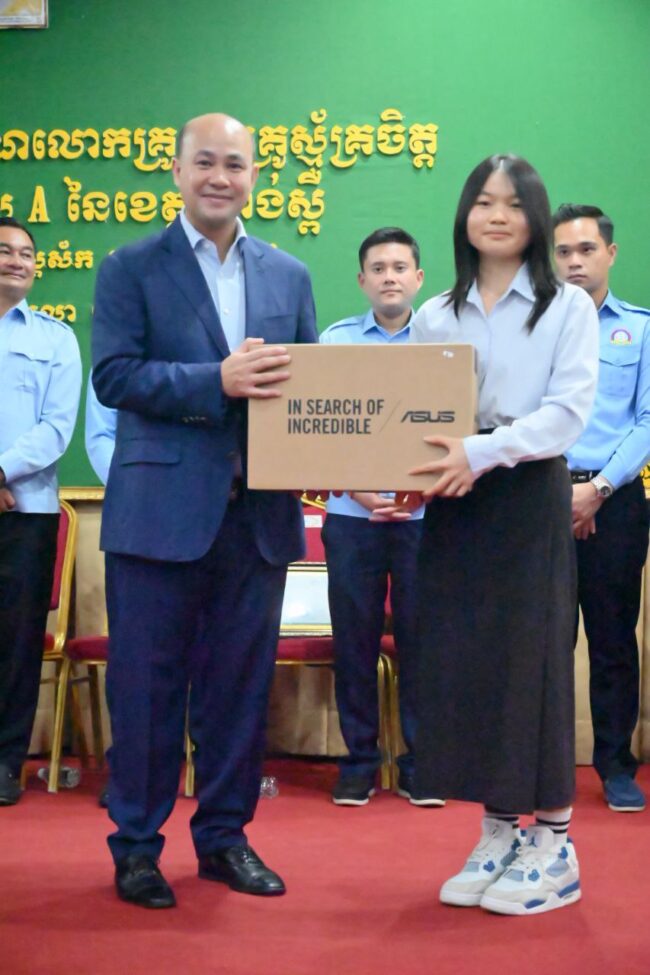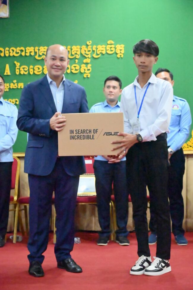 ឧបនាយករដ្ឋមន្ត្រី ហ៊ុន ម៉ានី ផ្តល់រង្វាន់កុំព្យូទ័រដល់សិស្សជ័យលាភីនិទ្ទេស A ៧៩នាក់ នៅខេត្តកំពង់ស្ពឺ