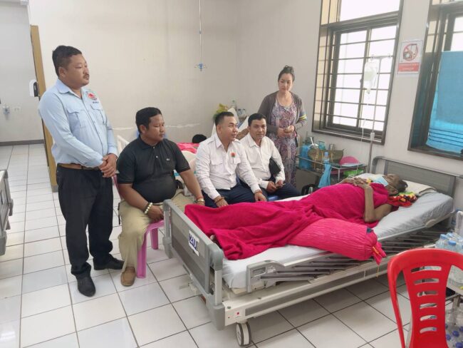 បាត់ដំបង ៖ នៅព្រឹកថ្ងៃទី០៣ ខែតុលា ឆ្នាំ២០២៥នេះ សមាគមសារព័ត៌មានសុក្រឹត សាខាខេត្តបាត់ដំបង ដែលមានលោក ស៊ីម វិសាល ជាប្រធានសាខា និងលោក រៀម សាលី ជាអនុប្រធាន ក្រោមការដឹកនាំរបស់លោក នួន នី ប្រធានសមាគមសារព័ត៌មានសុក្រឹត ដោយមានការអញ្ជើញចូលរួមពីលោក សាំ តុលា អគ្គលេខាធិការរងនៃសមាគមសារព័ត៌មានសុក្រឹត បានដឹកនាំក្រុមការងារចុះសាកសួរសុខទុក្ខដល់លោក អ៊ិន ឌី អ្នកសារព័ត៌មានប្រចាំខេត្តបាត់ដំបង ដែលមានជំងឺកំពុងសម្រាកព្យាបាលនៅមន្ទីរពេទ្យបង្អែកខេត្តបាត់ដំបង។