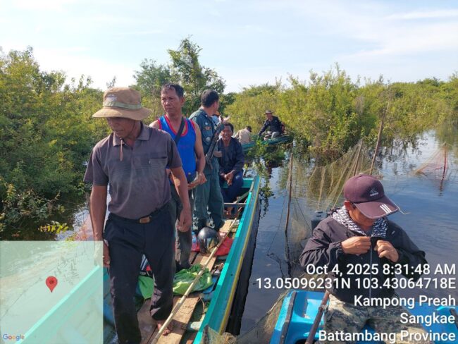 បាត់ដំបង ៖ កាលពីថ្ងៃទី០៤ ខែតុលាឆ្នាំ២០២៥ កម្លាំងគណបញ្ជាការកងឯកភាពស្រុកសង្កែ ដែលមានលោក នាង ច័ន្ទថារ៉ា អភិបាល នៃគណៈអភិបាលស្រុកសង្កែ ជាប្រធាន បានបន្តចុះបង្រ្កាបបទល្មើសនេសាទខុសច្បាប់ជាច្រើនទីតាំងនៅក្នុងភូមិសាស្ត្រឃុំកំពង់ព្រះ និងឃុំតាប៉ុន ស្រុកសង្កែ ខេត្តបាត់ដំបង។