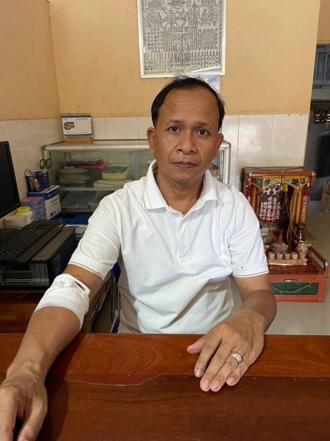 ១.ឈ្មោះ លី ជា ភេទប្រុស អាយុ៤៩ឆ្នាំ (ខាំត្រូវកែងដៃខាងស្តាំ) ខណៈពេលជនរងគ្រោះកំពុងដើរហាត់ប្រាណ។