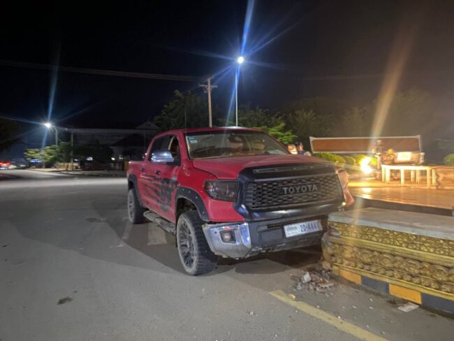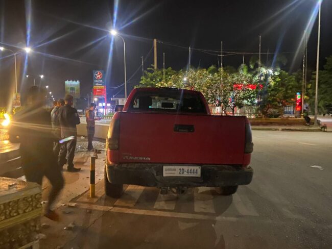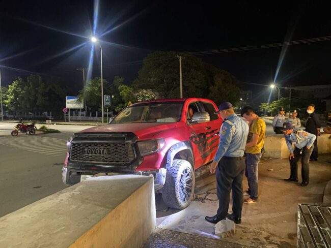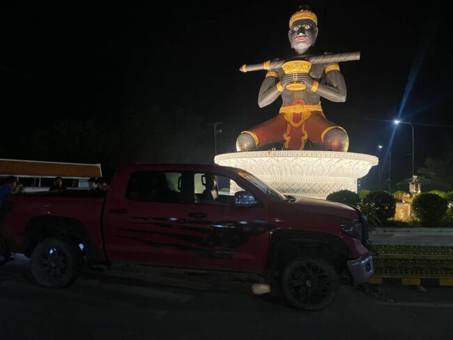 រថយន្តTUNDRA បោះពួយលឿនជ្រុលទៅបុករង្វង់មូលលោកតាដំបងក្រញូង ទាំងយប់រំលងអធ្រាត្រ