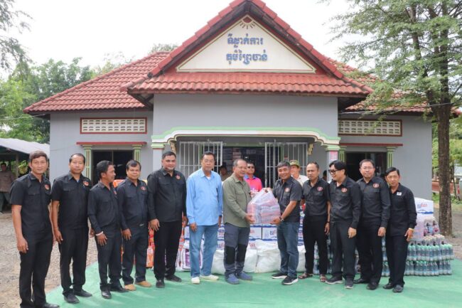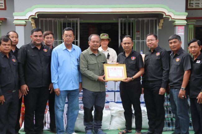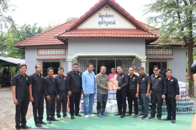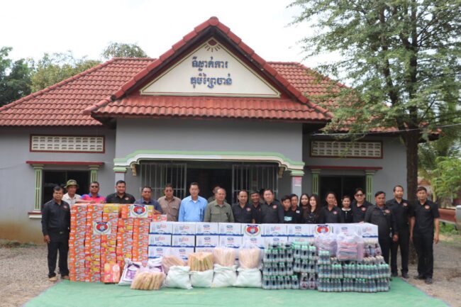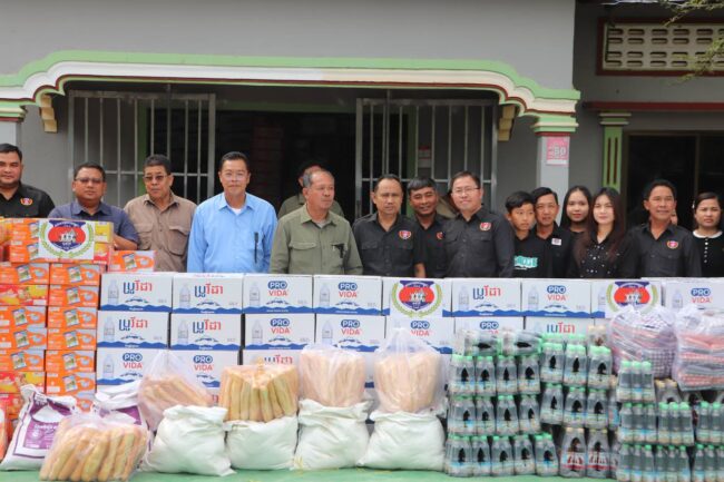 សម្ភារៈ និងគ្រឿងឧបភោគបរិភោគដែលប្រគល់ជូនរួមមាន៖ ១.មីជាតិ ចំនួន ១០០កេស, ២.ទឹកត្រី ចំនួន ៥០យួរ, ៣.ទឹកស៉ីអីវ ចំនួន ៥០យួរ, ៤.ទឹកសុទ្ធប្រូវីដា ១០០កេស, ៥.ក្រម៉ា ចំនួន ១០០, ៦.ស្ករស ចំនួន ១០០គីឡូក្រាម, ៧.អំបិល ចំនួន ១០០គីឡូក្រាម, ៨. នំបុ័ងបាក់យ៉ុង និងនំបុ័ងសាប ចំនួន២០០នំ ៕