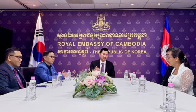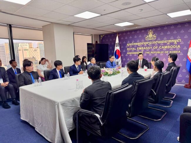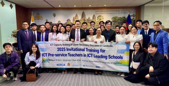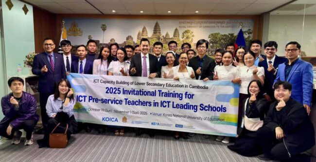 ភ្នំពេញ ៖ ឯកឧត្តម ឃួន ផុនរតនៈ ឯកអគ្គរាជទូតតែងតាំងនៃព្រះរាជាណាចក្រកម្ពុជាប្រចាំកូរ៉េខាងត្បូងបានអនុញ្ញាតជូន សិក្ខាកាមកម្ពុជាដែលបានចូលរួមវគ្គបណ្តុះបណ្តាល “The 2025 Invitational Training for ICT Teachers in ICT Leading Schools Program” និងមន្ត្រីតំណាងអង្គការ Korea Digital Education Frontiers Association (KEFA) ចំនួន ២៧ រូប ចូលជួបសម្តែងការគួរសម ។