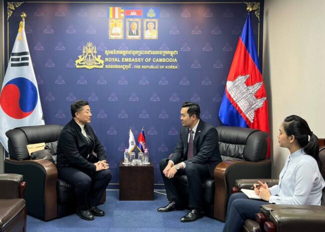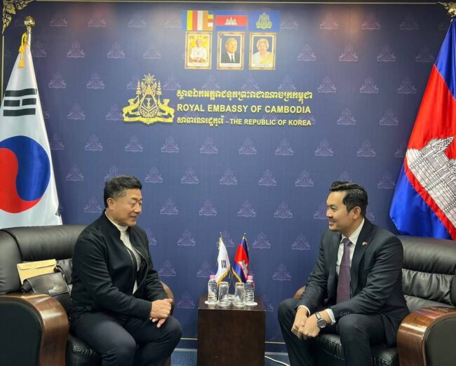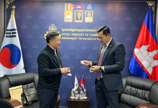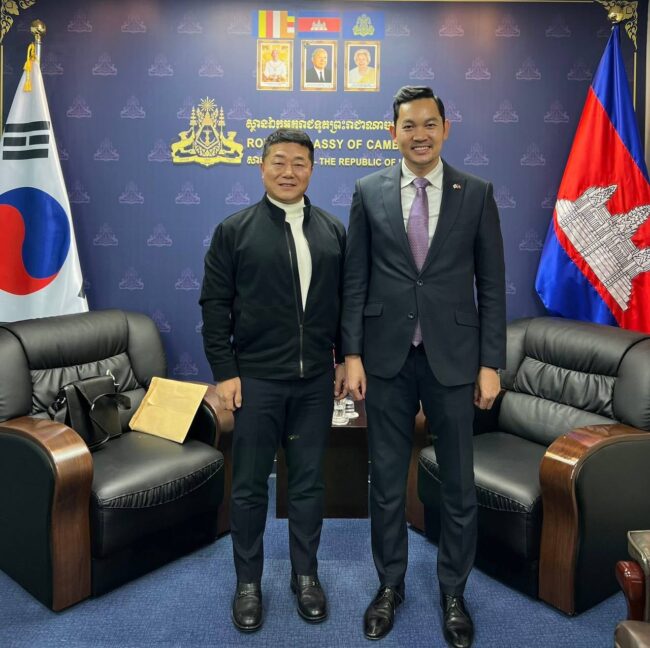 ភ្នំពេញ ៖ ឯកឧត្តម ឃួន ផុនរតនៈ ឯកអគ្គរាជទូតតែងតាំងនៃព្រះរាជាណាចក្រកម្ពុជាប្រចាំ សាធារណរដ្ឋ កូរ៉េ បានអនុញ្ញាតជូនលោក Yeo Woonyoung អតីតសមាជិកក្រមប្រឹក្សាទីក្រុងអាសាន និងជាសាស្ត្រាចារ្យជំនាញសិក្សាស្រាវជ្រាវអភិវឌ្ឍសហគមន៍ ចូលជួបសម្តែងការគួរសម និងពិភាក្សាការងារ ។