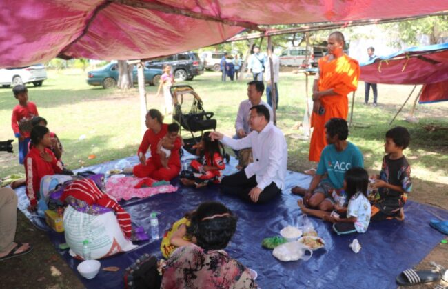 ក្រៅពីការនាំសាររំលែកទុក្ខនេះ ឯកឧត្តម ឌិត ទីណា ក៏បានអញ្ជើញសួរសុខទុក្ខបងប្អូនប្រជាពលរដ្ឋភៀសសិក មកពីភូមិព្រៃចាន់ ភូមិជោគជ័យ និងភូមិអូរបីជាន់ សរុប ២៥៧គ្រួសារ ដែលកំពុងបោះតង់ស្នាក់នៅក្នុងបរិវេណវត្តច័ន្ទស៊ីនេះផងដែរ ។