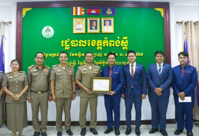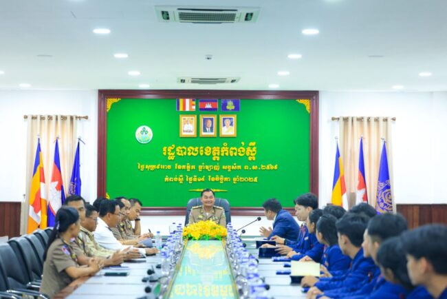 កំពង់ស្ពឺ ៖ អភិបាលខេត្តកំពង់ស្ពឺ លោកបណ្ឌិត ជាម ចន្ទ័សោភ័ណ បានក្រើនរំលឹកដល់យុវជនកម្ពុជាដែលត្រូវចេញទៅចូលរួមកម្មវិធីនាវាយុវជនអាស៊ីអាគ្នេយ៍និងជប៉ុន ឱ្យប្រឹងប្រែងផ្សារភ្ជាប់ និងកសាងទំនាក់ទំនងឱ្យបានល្អប្រសើរជាមួយយុវជនដទៃទៀតមកពីបណ្តាប្រទេសជាសមាជិកអាស៊ាន និងប្រទេសជប៉ុន។ការកសាងទំនាក់ទំនងល្អនេះ ជាគុណប្រយោជន៍មួយនៅក្នុងការកសាងទំនាក់ទំនងល្អលើការងារផ្សេងៗរួមទាំងការងារប្រទេសជាតិផងដែរនាថ្ងៃអនាគត។ការក្រើនរំលឹកដូច្នេះបានធ្វើឡើងនៅរសៀលថ្ងៃទី១៤ ខែវិច្ឆិកា ឆ្នាំ២០២៥ក្នុងឱកាសអនុញ្ញាតឱ្យប្រតិភូយុវជនកម្ពុជាចំនួន១៦រូប ដែលប្រលងជាប់ចូលរួមក្នុងកម្មវិធីនាវាយុវជនអាស៊ីអាគ្នេយ៍ និងជប៉ុនលើកទី៤៩ចូលជួបសម្តែងការគួរ និងទទួលនូវដំបូន្មានមួយចំនួនមុនចាកចេញទៅចូលរួមកម្មវិធីនៅប្រទេសជប៉ុន នៅសាលាខេត្តកំពង់ស្ពឺ។