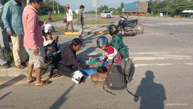 បាត់ដំបង ៖ បុរសវ័យចំណាស់ម្នាក់ រងរបួសធ្ងន់ក្រោយជួបឧបទ្ទវហេតុគ្រោះថ្នាក់ចរាចរណ៍ រវាងរថយន្តនិងម៉ូតូ នៅវេលាម៉ោង០៧និង៤០នាទី ថ្ងៃទី១៦ ខែវិច្ឆិកា ឆ្នាំ២០២៥ នៅចំណុចផ្លូវបំបែកហាយវេស្ថិតក្នុងភូមិខ្សាច់ពោយ សង្កាត់វត្តគរ ក្រុងបាត់ដំបង ។