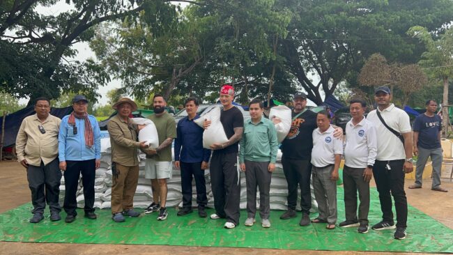 បន្ទាយមានជ័យ ៖ អ្នកបង្កើតមាតិការល្បីឈ្មោះ ជនជាតិអាមេរិក លោក Chris Rodriguez រួមនឹងមិត្តរួមការងារអាមេរិក លោក Jesse Turtle Thompson និងលោក China Mac បាននាំយកអំណោយអង្ក និងទឹកសុទ្ធ ជំនួយដល់ប្រជាពលរដ្ឋភៀសសឹក ភូមិព្រៃចាន់ ។