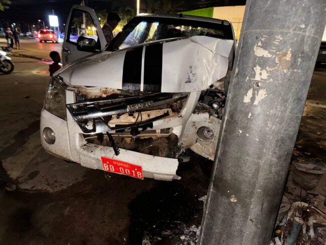សង្ស័យផឹកស្រាស្រវឹង បើករថយន្តចេញពីសួនមាត់ស្ទឹងព្រះពន្លា ទៅបុកបង្គោលភ្លើងរបួសធ្ងន់ស្រាល៤ម្នាក់